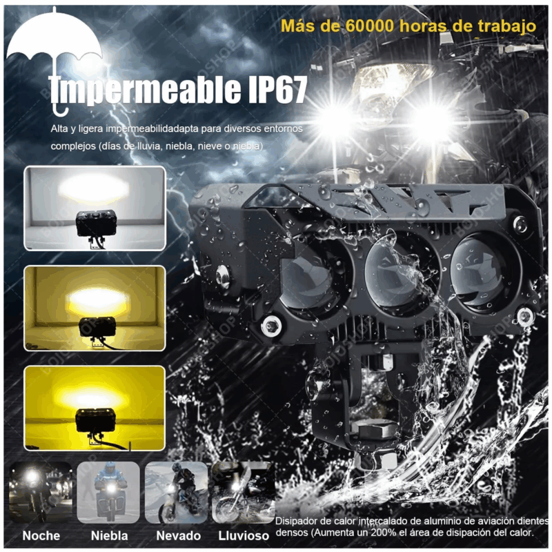 2pzs Luz Auxiliar Altabaja Moto De Tres Ojos Con Ventilador