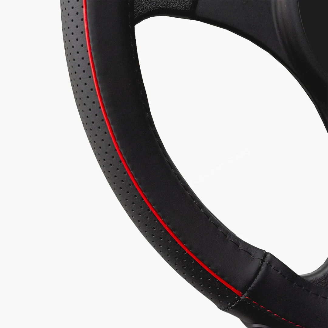 La cubierta del volante está hecho de cuero de microfibra exterior y el interior de caucho natural, sano y respetuoso del medio ambiente, le trae un gran tacto y sensación. El diseño de orificio de respiración en la superficie puede evitar la generación de suciedad y bacterias. siempre cuidar de la salud de sus palmas.