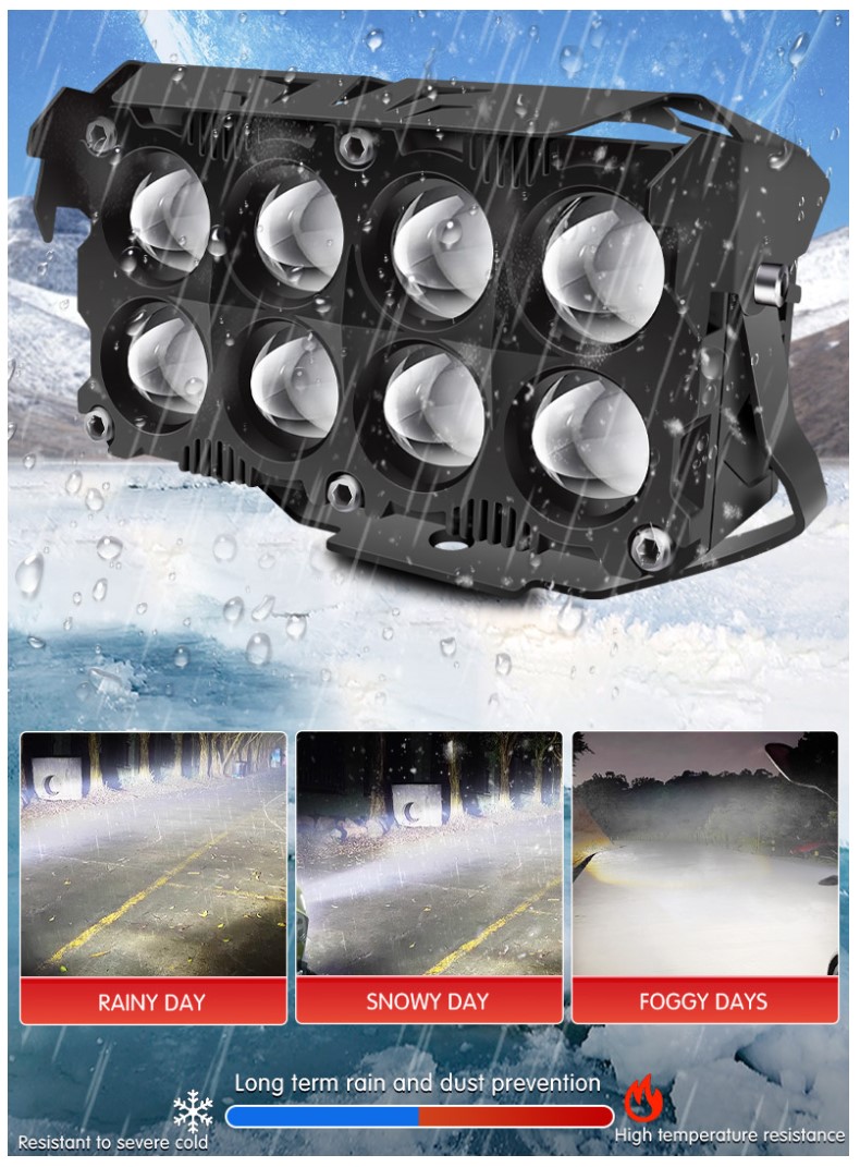 Foco LED multifuncional es ideal para una amplia gama de aplicaciones. Puede utilizarse como luz auxiliar de alta intensidad, luz de conducción para faros, luz antiniebla, lámpara de trabajo o luz puntual. Su versatilidad lo hace adecuado para diversos entornos, proporcionando un excelente rendimiento en condiciones de nieve, lluvia, niebla o polvo.