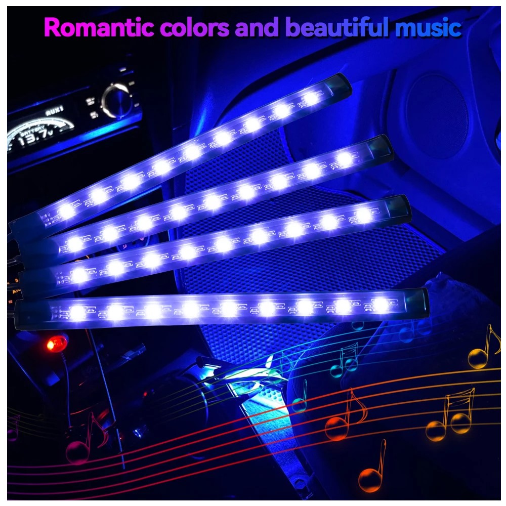 Luz RGB 4pcz Interior el Auto Al Ritmo De la Musica Control