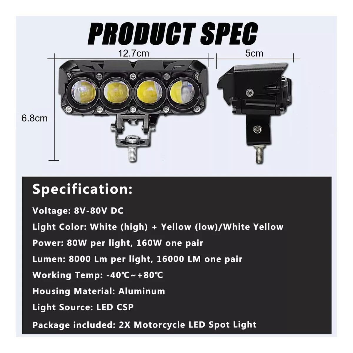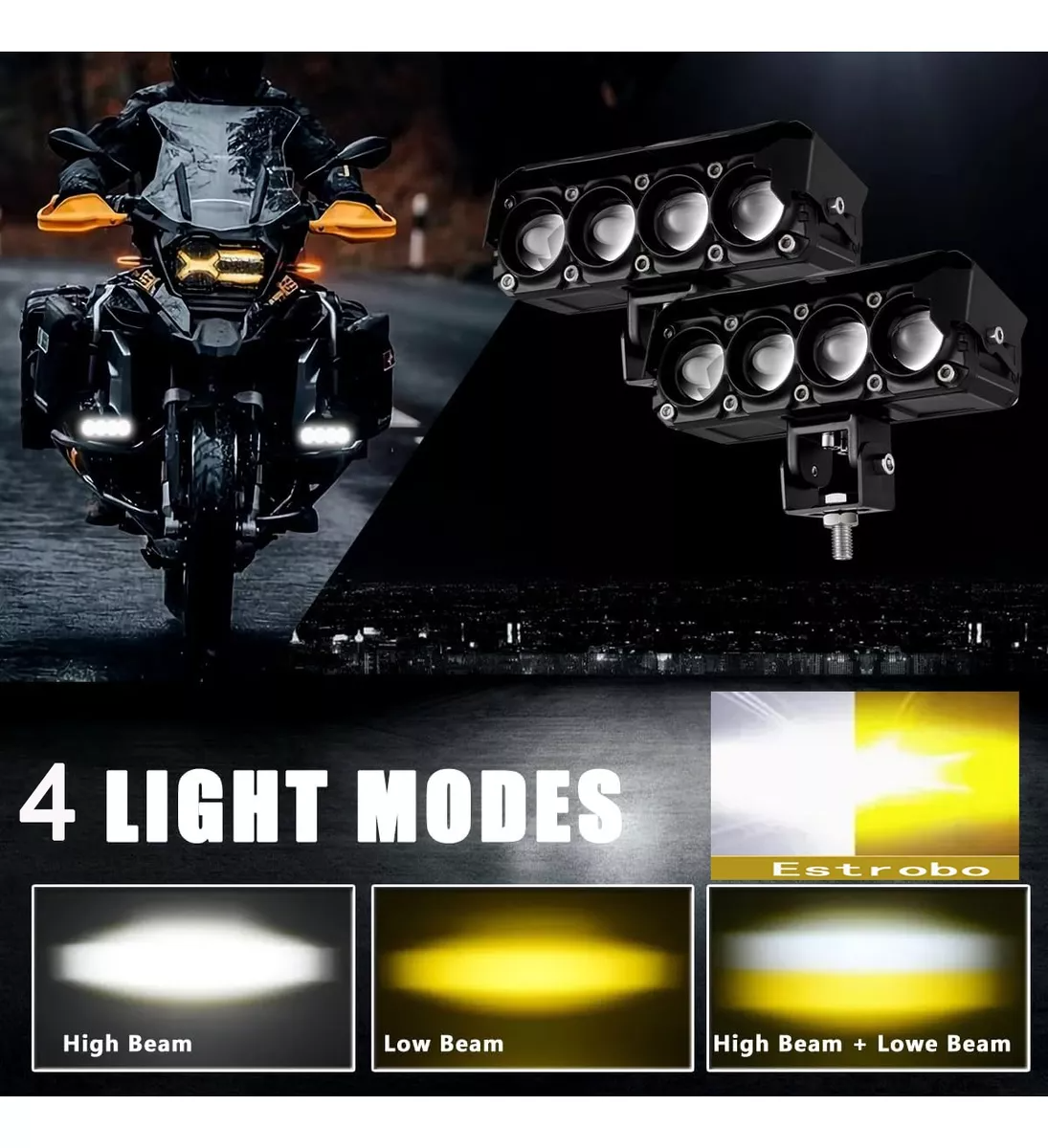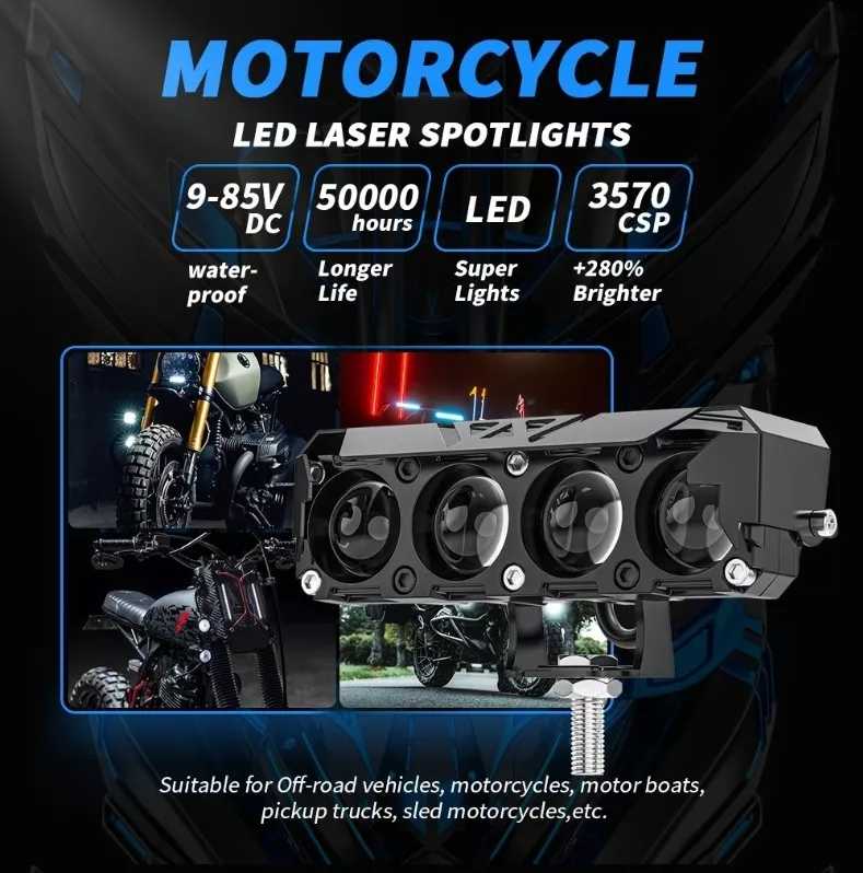 Ilumina tus trayectos con estos potentes focos LED de tres ojos, diseñados para ofrecer una alta luminosidad y una cobertura de luz amplia. Con un sistema de doble color, estas luces brindan una visibilidad superior en cualquier condición climática, mientras que su diseño de inicio rápido y eficiencia energética los convierte en una opción ideal para mejorar tu seguridad en la carretera.