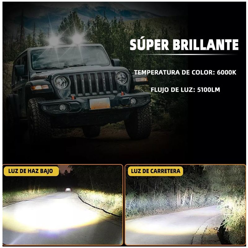 5100 lúmenes por luz, generando un potente haz blanco que ilumina el camino en